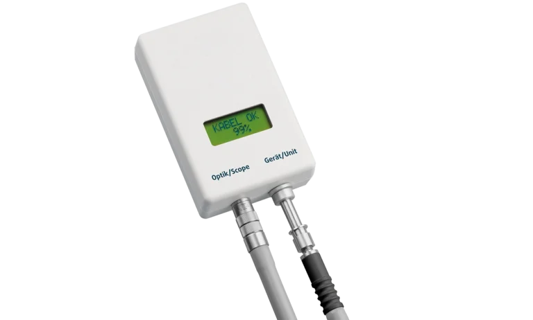 Mit dem Lichtleitkabel Testgerät wird die Funktionalität und die Integrität von Lichtleitkabeln überprüft. Es stellt sicher, dass die Kabel genügend Licht übertragen, was für die Aufrechterhaltung einer optimalen Ausleuchtung während laparoskopischer Verfahren unerlässlich ist.
