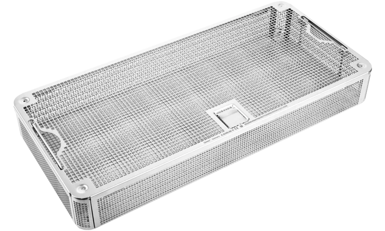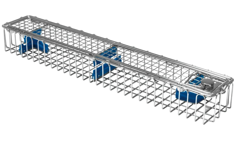 Nuestras cestas de alambre para esterilización están diseñadas para guardar hasta dos endoscopios. Proporcionan una solución personalizada para una esterilización eficaz. Las cestas encajan perfectamente en nuestro set de contenedores para instrumentos laparoscópicos, lo que permite un fácil almacenamiento y transporte a la siguiente operación.